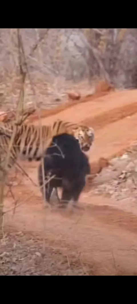 Mama bear protecting cubby from tiger #mamabearscubs🐻