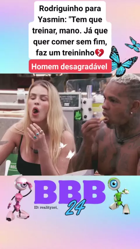 Rodriguinho para Yasmin: "Tem que treinar, mano. Já que quer comer sem fim, faz um treininho#Redebbb #kwainobbb #reality #YasminBrunet #Rodriguinho