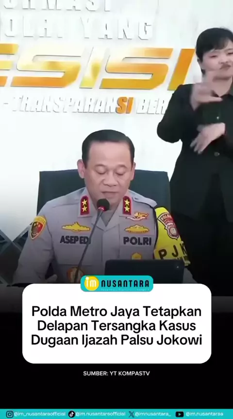 Polda Metro Jaya menetapkan delapan tersangka dalam kasus dugaan ijazah palsu Presiden Joko Widodo. Hasil penyelidikan menyatakan ijazah Jokowi dari Universitas Gadjah Mada terbukti asli dan sah. Polisi melibatkan 130 saksi, 22 ahli, serta hasil uji Puslabfor Polri yang memperkuat temuan tersebut. Para tersangka diketahui telah melakukan manipulasi digital terhadap dokumen ijazah. Selengkapnya: https://imnusantara.com/ #im_nusantara #Jokowi #PoldaMetroJaya #IjazahAsli #KasusHukum