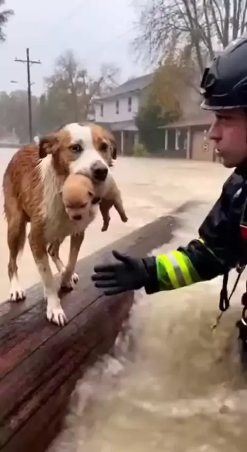 CACHORRINHO Salvando FILHOTE com a Boca — e o Bombeiro RESGATOU os Dois! Um cachorro macho se recusa a abandonar seu filhote, segurando-o firmemente pela boca enquanto luta para sobreviver. No momento mais crítico, um bombeiro surge e estende a mão — não apenas para resgatar, mas para salvar uma família inteira. Contra todas as dificuldades, os dois saem ilesos. Uma prova emocionante de que o instinto de proteção e a coragem não têm espécie. ❤️ Assista até o fim e prepare-se para se emocionava