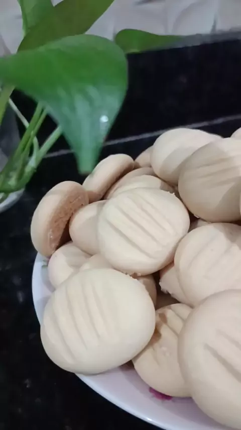 Biscoitinho de Maizena 😋 Ingredientes: Meia Caixinha de leite condensado 4 Colheres de margarina ou manteiga 250 Gramas de maizena Assar no forno pré aquecido a 200 graus, até dourar em baixo 😊