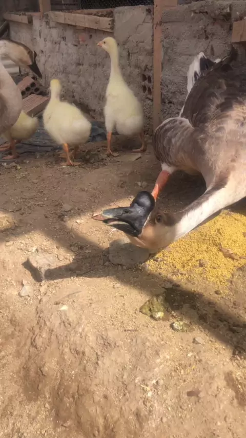 Gansos chinês pardos e branco #aves #filhotes #ganso