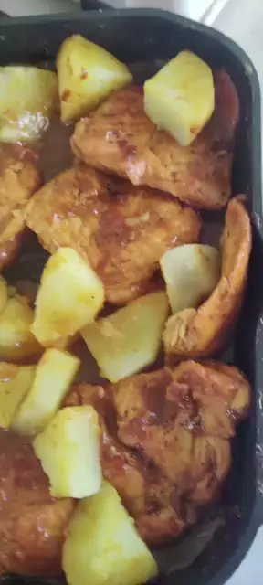 Olha que delícia pessoal, esse frango ao creme de queijo com batatas.