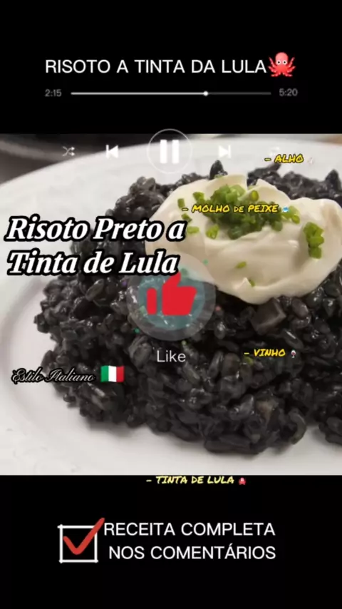 Risoto a Tinta de Lula. #risoto #lula #peixe #frutosdomar #receitasfaceis