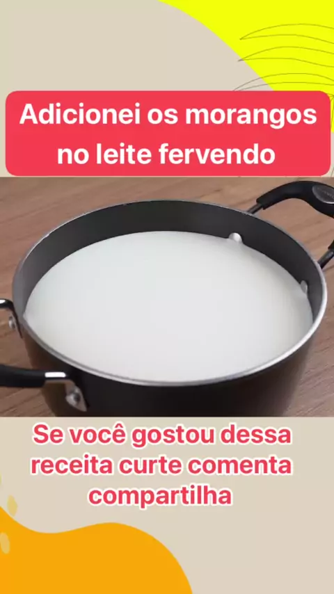 Adicionei os morangos no leite fervendo #receita #receitaboa #receitassimples #amocomer #morango