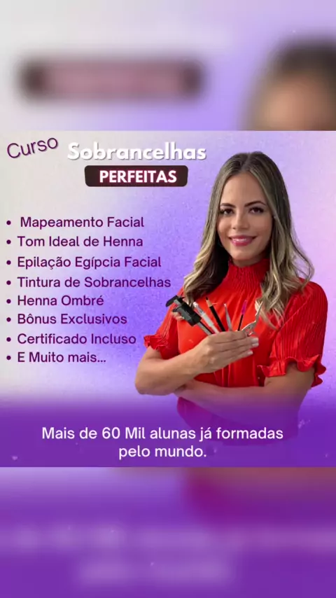 ✨ Transforme sua habilidade em design de sobrancelhas em uma profissão rentável! 🌟 Curso completo com técnicas inovadoras e práticas. 💸 Descubra como ganhar até R$5000 por mês neste mercado em expansão. 📚 Acesso imediato ao curso. #DesignDeSobrancelhas #RendaExtra #CapacitaçãoProfissional #SucessoNaBeleza #EmpreendedorismoFeminino