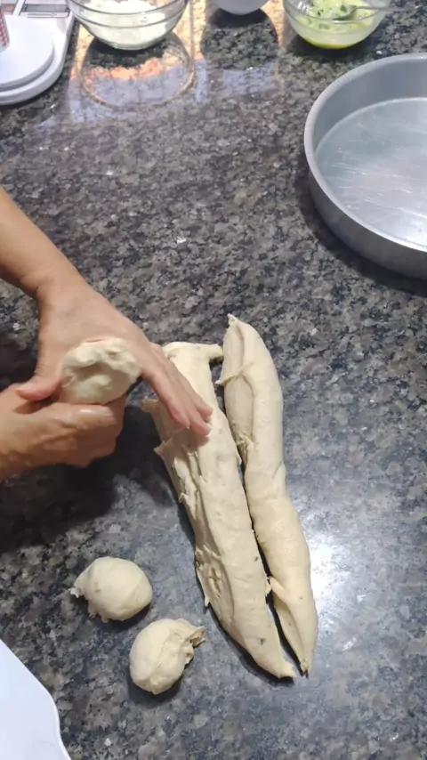 Focaccia Massa 300ml de agua 5g de fermento biologico 1 colher de sobremesa de acucar 300g de farinha de trigo 1 colher de chá de sal 2 colheres de sopa de azeite Recheio Azeite pra regar Tomate cereja a gosto Azeitona a gosto Azeitona preta a gosto Salame a gosto #focaccia #pao #italiano #delicia #Receita