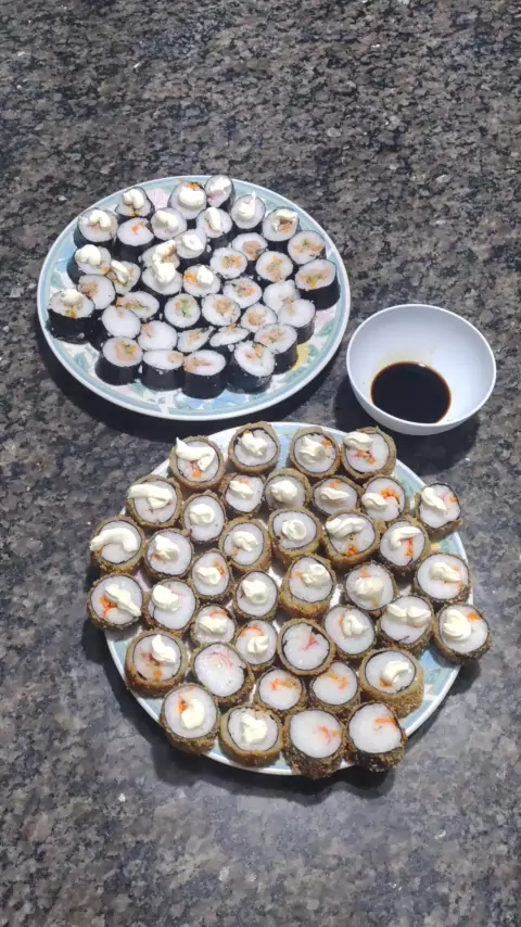 Hot philadelphia e Hossomaki 1 xicara de arroz 4 xicaras de agua 1 colher de cha de sal 3 colheres de açúcar 7 colheres de vinagre de arroz ou vinagre branco Alga desidratada (nori) 150g de kani 1 lata de atum 1/2 cenoura 1/2 pepino Empanando 1 copo de agua gelada 4 colheres de sopa de farinha de trigo 1 colher de cha de sal 300g de farinha panko #hotroll #sushi #hossomaki #Receita #comidajaponesa