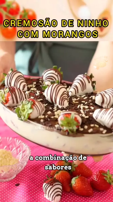 CREMOSÃO DE NINHO COM MORANGOS 😍 #bolosdecorados #receitaboa #receitas #Receita #sobremesa