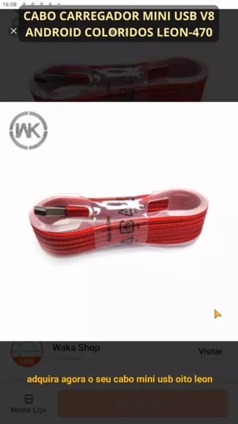 Cabo Carregador Mini USB V8 android coloridos leon-470 #kwai #loja #venda