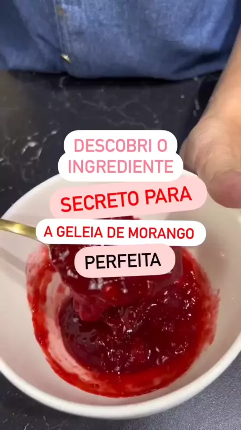 Geleia de morango Receita : -300g morango -100g açúcar refinado -5g ingrediente secreto 🎥 @felipebakeoff7 Sigam ele galera! Por lá vocês encontram muitas receitas maravilhosas! #geleia #geleiacaseira #geleiademorango #gastronomia