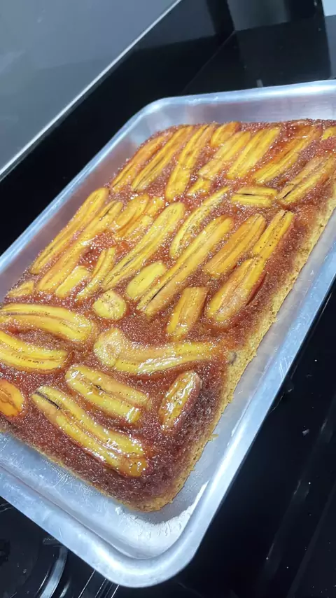 Bolo de banana Calda 2 xícara de açúcar 1 xícara de água Massa do bolo 4 ovos 3 colher de margarina 1 1/2 xícara de açúcar Misture bem Adicionei fracionadamente misturando 3 xícara de farinha de trigo com fermento 1 1/2 de leite Adicionei por fim 1 colher de fermento e misture para incorporar Montagem na forma Adicione a calda 10 bananas partidas ao meio E a massa Leve para assar em forno pré aquecido a 180 graus, faça o teste do palito #bolodebanana #bolo #Receita #chef #culinaria