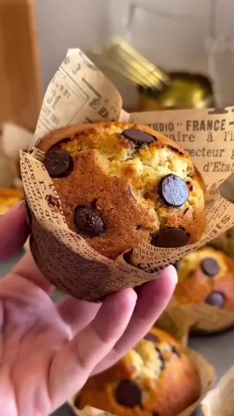MUFFINS DE FILME! 2 ovos 120g açúcar 1 colher baunilha 100ml óleo + 120ml leite 200g farinha + 10g fermento 120g gotas de chocolate Preparo: Bata ovos, açúcar e baunilha até clarear. Junte óleo e leite. Misture farinha e fermento (sem bater muito!). Adicione as gotas. Forminhas (3/4 cheias). + gotas por cima. Forno 180°C (20-25 min). Créditos: @foodloove_fr #chocolate #receitafacil #lanche #bolo #viraliza