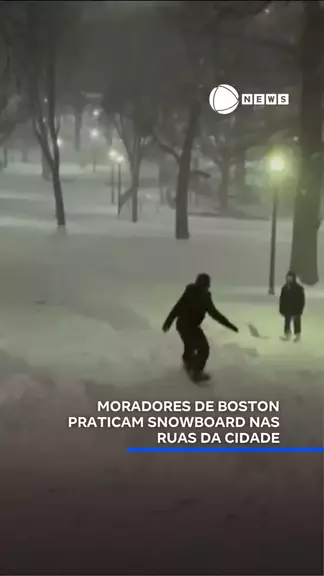🏂❄️ Imagens divulgadas nas redes sociais registraram uma cena inusitada em Boston, nos Estados Unidos. Após uma forte tempestade de inverno, que aconteceu no último domingo (18) , moradores aproveitaram as ruas cobertas de neve para esquiar e praticar snowboard. 📲 #RecordNews