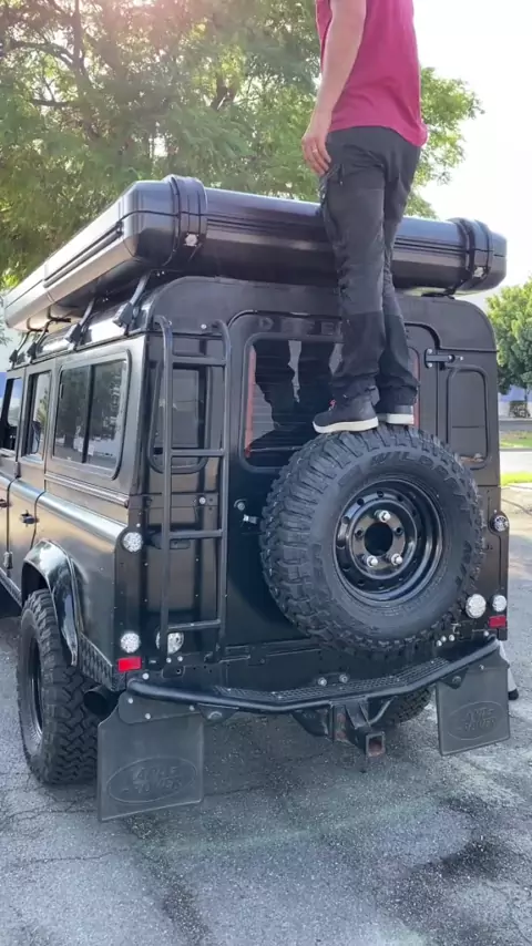 Top FAQ - are there screens and shades? Yes! Side windows have a fixed screen and magnetic shade, back wall has zippered combo.#camping#overlanding#fourseason#allweather#offgrid#defender110#landroverdefender#landrover