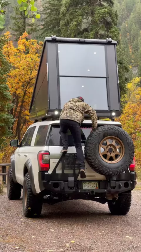 How fast can you break down/set up your rooftop camper in the rain? Less than 20 seconds each way!#rtt#fall#camping#sitka#sitkagear#johnmayer