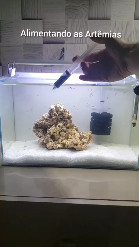 Alimentando com Spirulina em pó as Artêmias. #kwaicriador10k #diáriocriativo #reefminuto #aquarismo