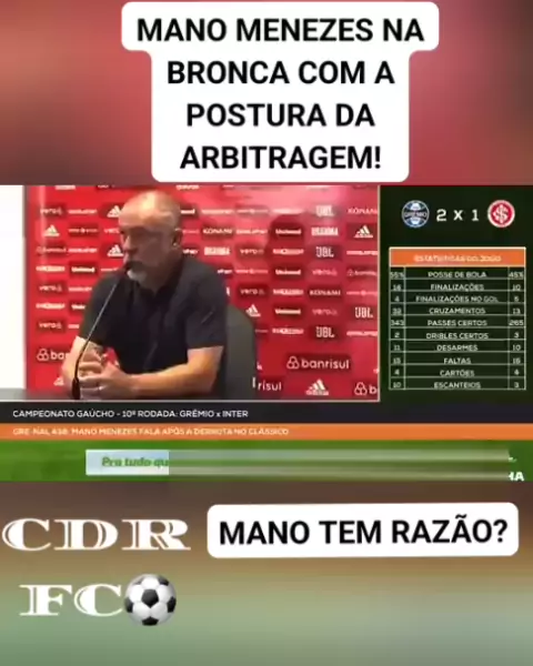 O técnico Mano Menezes ficou na bronca com a arbitragem do clássico! #futebol #Sports #esporteviral #foryou #grenal