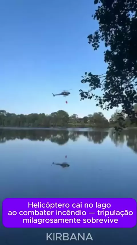 Helicóptero cai no lago ao combater incêndio — tripulação milagrosamente sobrevive! #noticias #news