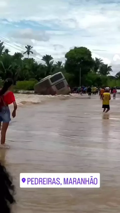 Ônibus e levado por correnteza de Agua no meio da pista. Maranhão