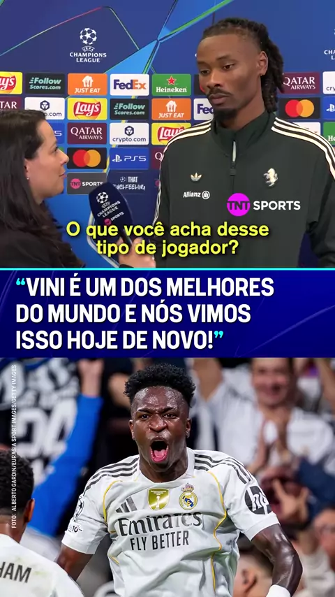 A vitória do Real Madrid hoje passou pelo talento de Vini Jr. 🇧🇷🔥 "Um dos melhores jogadores do mundo", e não sou eu que tô dizendo. O meia da Juventus Khéphren Thuram não poupou elogios ao brasileiro