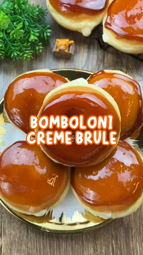 BOMBOLONI CREME BRULEE ✨ Donat bomboloni cream brulee dengan sensasi gula retak lembut enak banget. #bomboloni #cremebrulee #resepabi #donat #resepdonat