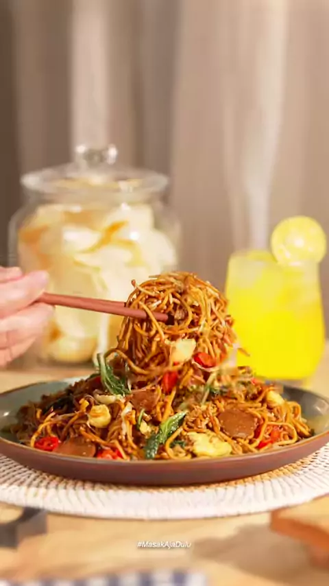 MIE GORENG Resep Satset Rudy Choirudin Bahan 1 (dicampur rata): • 2 SDM kecap manis • 1 SDM kecap asin • 1 SDM saus tiram • 2 SDT Desaku Bawang Putih Bubuk • ½ SDT Ladaku Merica Bubuk • ½ SDT garam • 3 SDM air Bahan 2: • 5 SDM minyak goreng • 4 buah bawang merah, dirajang • 2 butir telur, dikocok lepas • 3 buah bakso, dirajang • 100gr kol, dirajang kasar • 75gr sawi hijau, dipotong • 500gr mie kuning basah Cara Memasak: 1. Campur semua Bahan 1, aduk rata, sisihkan. 2. Panaskan minyak, tumis baw...