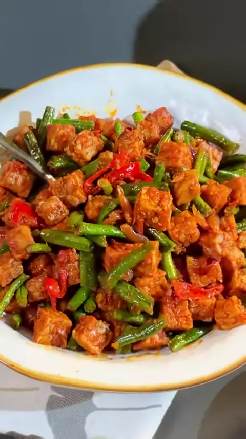 KERING TEMPE resep satset chef Rudy Choirudin Bahan 1: • 300 Gr Tempe (potong korek lalu goreng kering) • 100 Gr Kacang Goreng Bahan 2: (haluskan) • 1 Buah Tomat • 8 Buah Bawang Merah Bahan 3: (campur rata) • 1 Sachet Desaku Bumbu Balado • 150 ml Air Bahan 4: • 5 SDM Minyak Goreng (untuk menumis) • 1/2 SDT Garam • 4 SDM Gula Cara Memasak: 1. Tumis bumbu halus (Bahan 2) sampai harum dan matang. 2. Campur Desaku Bumbu Balado dengan air (Bahan 3), aduk rata kemudian tuang ke tumisan bumbu halus. 3...