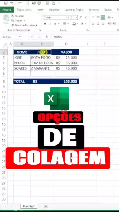 Excel: Área de transferência da Página Inicial, aplicação prática passo a passo das opções de Colagem no Excel. Acesse o Link da Bio e vem fazer parte do meu treinamento de Criação de Dashboard em Excel. #excel #planilhas
