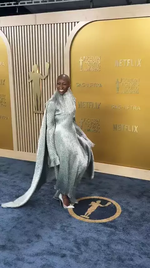 Cynthia Erivo, concorrendo na categoria de Melhor Atriz por #Wicked, exibe look deslumbrante no red carpet do #SAGAwards. 📽 HollywoodReporter #cynthiaerivo