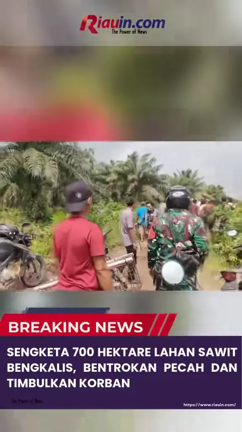 Bentrok Konflik Warga Pengelola Lahan 700 Ha Sitaan PKH Bentrokan antar kelompok warga terjadi di Desa Pamesi, Kecamatan Bathin Solapan, Kabupaten Bengkalis, Senin (22/12/2025) pagi. Insiden ini dipicu konflik pengelolaan lahan perkebunan kelapa sawit eks PT Sinar Inti Sawit (SIS) seluas sekitar 700 hektare yang kini dikelola PT Palma Agung Betuah (PAB) melalui kerja sama operasi dengan PT Agrinas Palma Nusantara (APN). Puluhan pekerja PT PAB yang hendak memasuki areal perkebunan dihentikan ol...