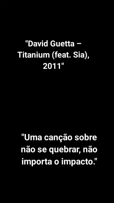 Uma canção sobre não se quebrar, não importa o impacto. David Guetta – Titanium (feat. Sia), 2011 #lembrançasincricriveis