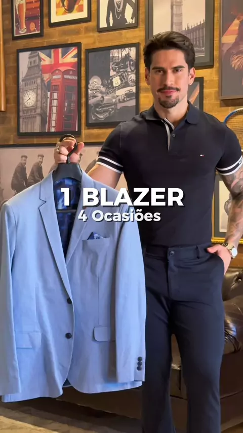 Trazendo a vocês 4 possibilidades com um blazer azul claro 👔. Qual delas você preferiu? Comente aqui embaixo 👇🏻