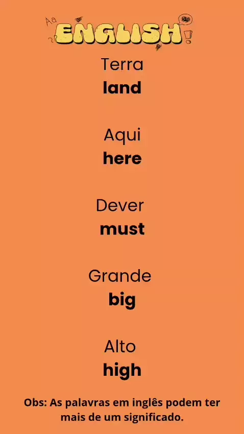 Curso de Inglês. Português - Inglês, 43: Terra land Aqui here Dever must Grande big Alto high #ingles #linguainglesa #estadosunidos