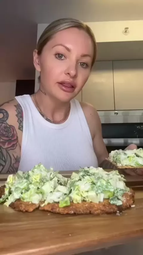 Com Click Caesar salada pizza!! # ceasarsaladpizza # macros # macromeals # highproteinmeals # highprotein # protein # pizza # saudável