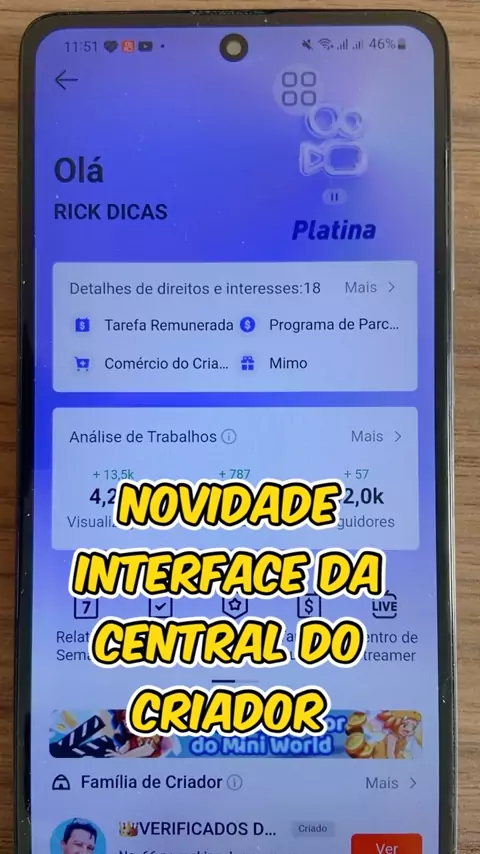 Novidade no kwai mudou a interface da central do criador, e aí gostou ? #EstrelaDeFamília #Ultra10kvis #copadobrasil
