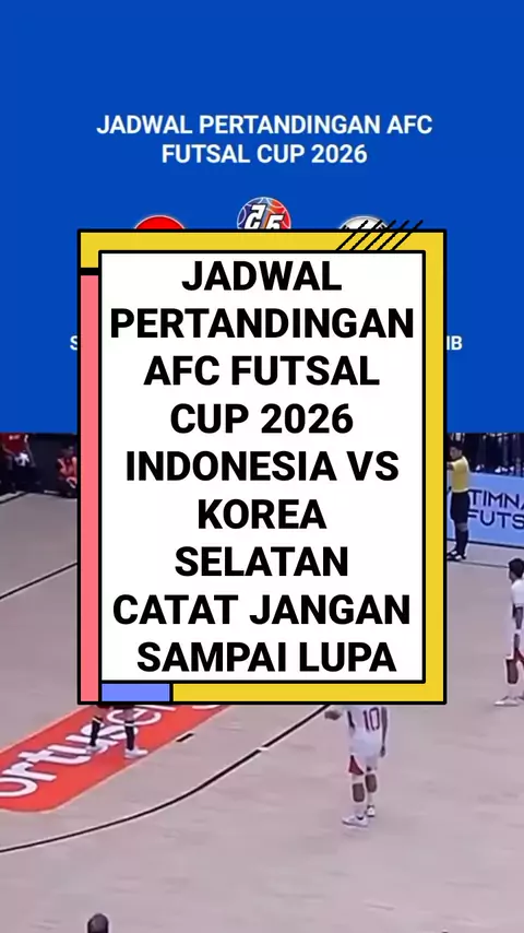 Jadwal pertandingan AFC Futsal Cup 2026, Indonesia vs Korea Selatan pada Selasa, 27 Januari 2026, live streaming MNC TV, pukul 19:00 WIB pertandingan tersebut akan berlangsung di Stadion Indonesia Arena. #afcfutsalcup2026 #TimnasIndonesia #PemainTerbaik #SnackmajukanDesa