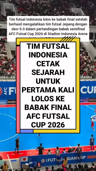 Tim futsal Indonesia berhasil mengalahkan tim futsal Vietnam dengan skor 3-2 dalam pertandingan babak 8 besar AFC Futsal Cup 2026 di Stadion Indonesia Arena pada Selasa, 3 Januari 2026. #afcfutsalcup2026 #TimnasIndonesia #PemainTerbaik #SnackmajukanDesa