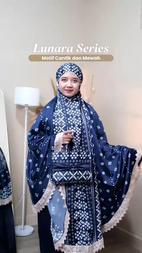 Try on Mukena Lunara Series warna navy dengan bahan silk premium ✨ Lembut, jatuhnya anggun, dan nyaman dipakai seharian🤍 #mukenalebaran #rekomendasimukena #ramadhanekstraseru #mukenahcantik
