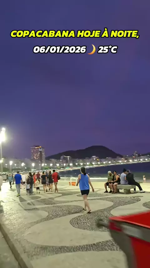 06/12/2026 19:05🌙 25°C Praia de Copacabana hoje à noite. #noticias #riodejaneiro #copacabana #turismo #viagens