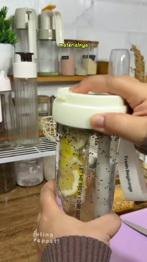 Membalas @lastrisasongko Bikin infused water simple pakai buah lemon dan chia seed. Makin semangat pakai botol infused water Let Me. Bagian tempat buahnya berlubang2 dan bisa dilepas pasang, praktis!#botolinfusedwater#infusedwater#botolairminum#botolminumestetik#botolminum