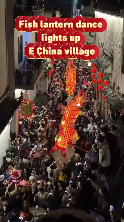 Fish lantern dance performances drew many tourists on Saturday night to the rich festive atmosphere of Zhanqi Village, east China's Anhui Province. #FishLantern #DancePerformances #SpringFestival #China