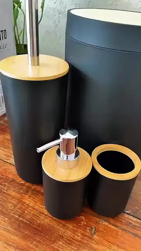 Kit Banheiro Completo Lixeira C/ Tampa Detalhes Em Bambu Luxo #banheiro