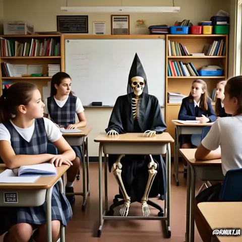 Nooooo scuala noooo! #school #sleep #brainrot #skeleton #aiart
