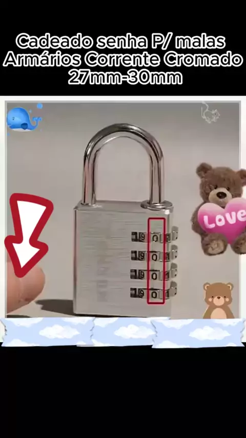 Cadeado senha P/ malas Armários Corrente Cromado 27mm-30mm