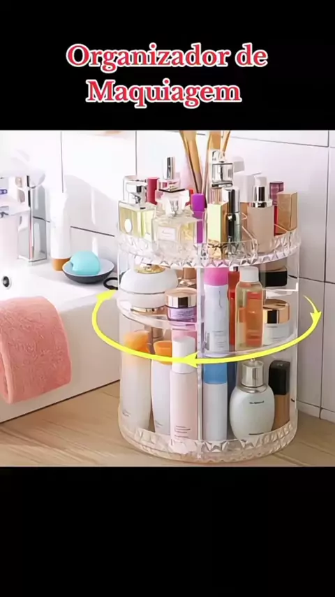 Organizador de Maquiagem Acrílico 360° Giratório | Porta Cosméticos Rotativo Transparente #organizadordemaquiagem #organizadorgiratorio #organizadortransparente