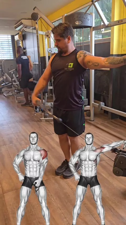 treino completo de ombro Abdução de ombro na polia baixa remada alta no smith desenvolvimento sentado HBC flexão de ombro na polia baixa com corda crucifixo inverno unilateral na polia média fazer 4x 8 a 10 repetições #ombro #Armyday #treinodesuperiores #fy #fyp♡