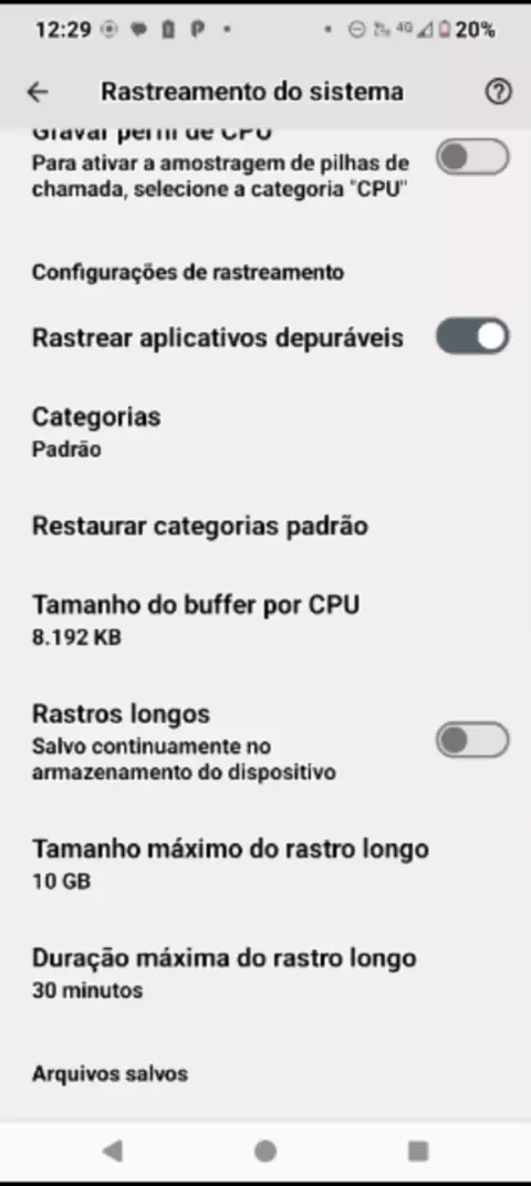 Rastreamento do Sistema>Tamanho do Buffer