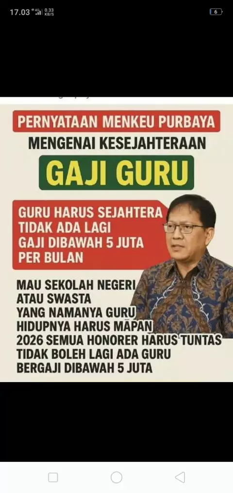JanjI Menkeu Purbaya, bahwa gaji guru di tahun 2026 tidak Ada yang di bawah 5 juta #gajiguru #gaji