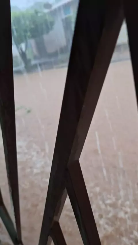 Poucos minutos de chuva, fica tudo alagado.